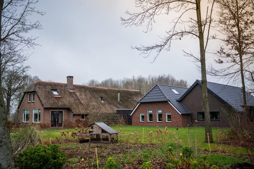 Er stonden al 2 gebouwen op: één volwaardige woonboerderij en een kleinere woning die gemakkelijk uitgebreid kon worden. De uitdaging was vooral dat er een agrarische bestemming op zat én dat het perceel gesplitst moest worden. Lennie: ‘We hebben toen een bod gedaan onder voorbehoud dat het erf gesplitst kon worden en we het bestemmingsplan konden wijzigen.’